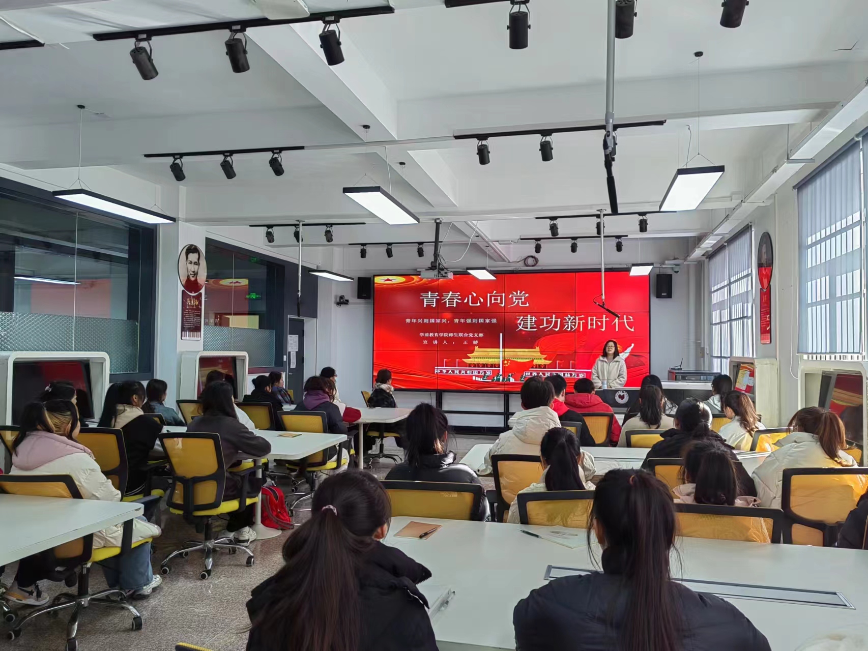 为全面领会习近平新时代中国特色社会主义思想的科学体系、核心要义、实践要求,推动团员和青年主题教育入脑入心,2023年12月7日,学前教育学院团总支组织2023年下半年新团员在智慧教室开展主题团课。