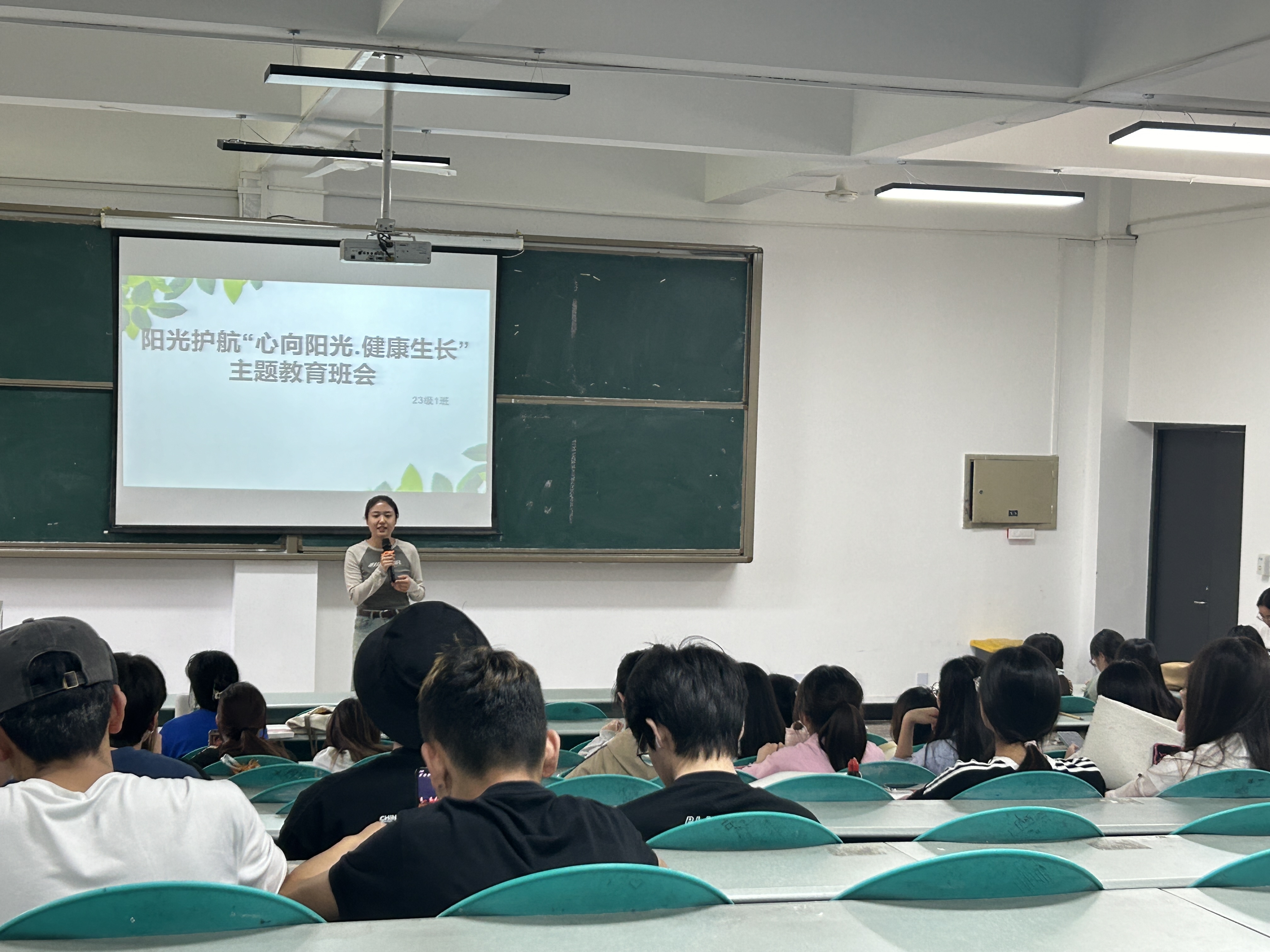 本次班会主要内容围绕“心理健康教育的重要意义”、“大学生常见的心理问题”、“加强心理问题应对能力与情绪调适方法”等内容展开。活动伊始,各班班主任向大家介绍了心理健康的相关知识,并通过实际案例深入剖析了大学生焦虑和压力产生的原因。然后向同学们分享了一系列调适情绪的有效方法,如:深呼吸、冥想、有氧运动等身体放松技巧,或培养自己的兴趣爱好,找到适合自己的情绪宣泄口等,鼓励学生调整自己的思维方式,保持积极的心态面对生活中的问题和烦恼,与班级同学以互帮互助的氛围携手并进,健康成长。