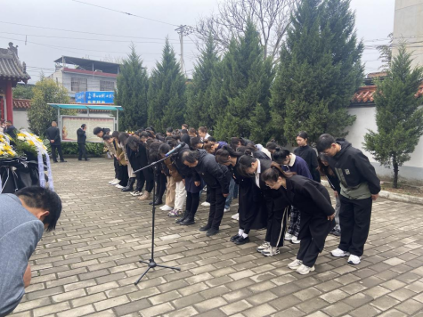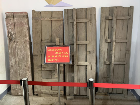 石海利,索村党支部书记兼村主任,在他的介绍下,每一张照片、每一件文物背后的故事总是让我们陷入沉思,最震撼人心的是几扇陈列的老庙门,革命烈士留下的血手印在上面依稀可见。师生们怀揣着敬佩、愤怒、激昂的心情,深切感受到革命者的英勇和无畏。