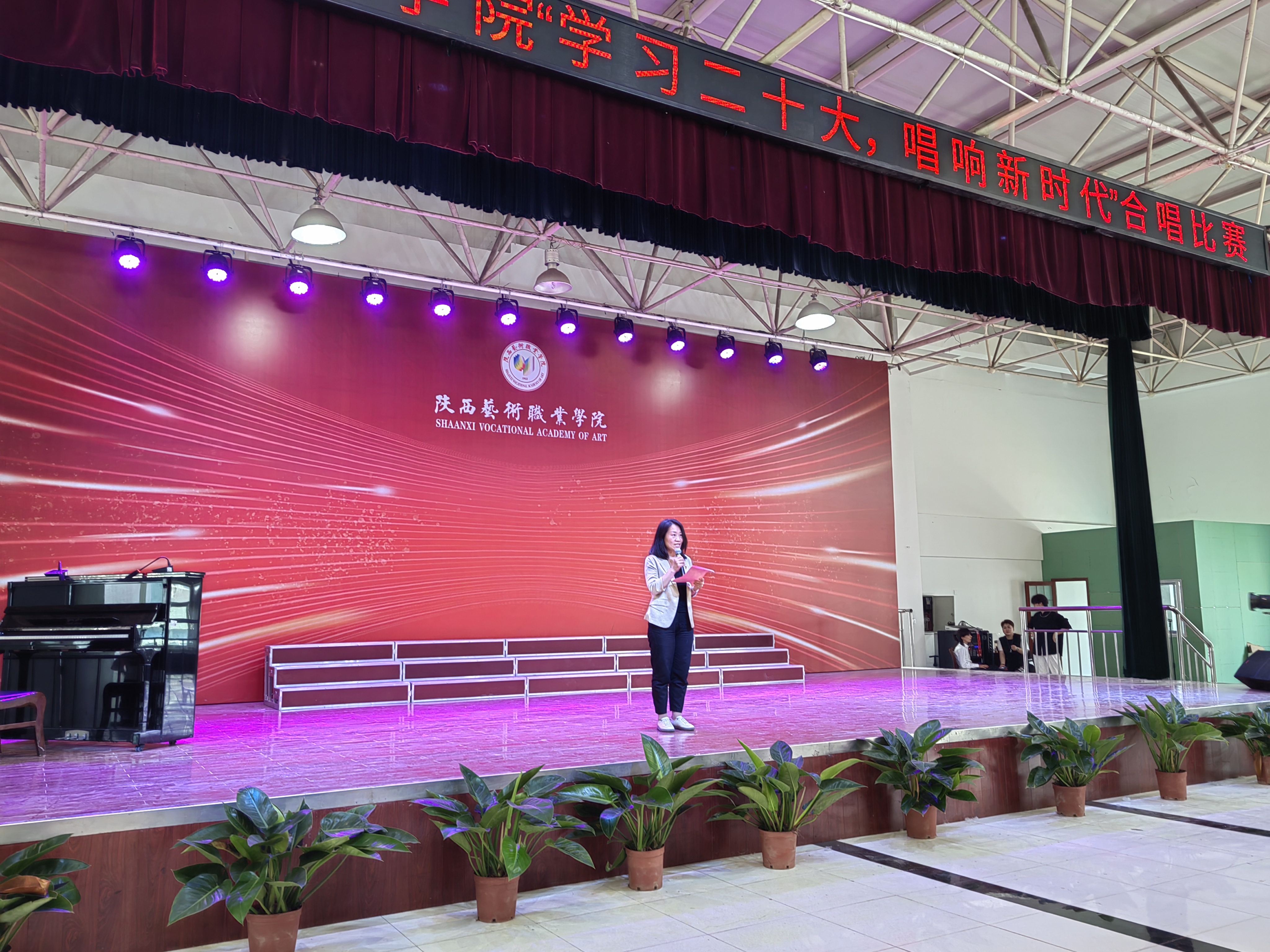 刘慧敏院长发表讲话。她表示,今天的合唱比赛是一场视觉、听觉、感觉的多重享受,更是每个班级、每名学生这一个多月以来努力和坚持的见证和说明。悦耳的歌声、创意的舞蹈和整齐优美的呈现,足以证明学生们的耐心和用心。她借用习近平总书记“青年一代有理想、有担当,国家就有前途,民族就有希望”勉励全院学生,坚定共产主义理想和信念,奋斗正青春,立志做大事。