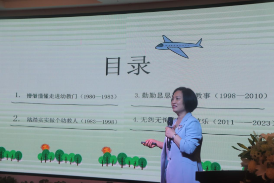 茶歇后西安和平新时代幼儿园第一园长程智慧园长以“讲述昨天故事 构筑今天梦想”为主题的讲座与到场师生进行了精彩分享,现场每位同学就今日的所看所感与未来自我的职业发展也进行了互相交流。